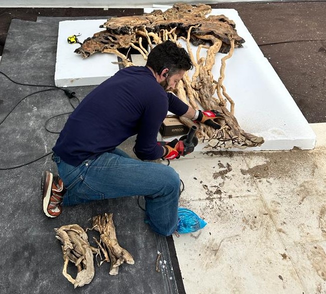 Escultura em madeira com motosserra.