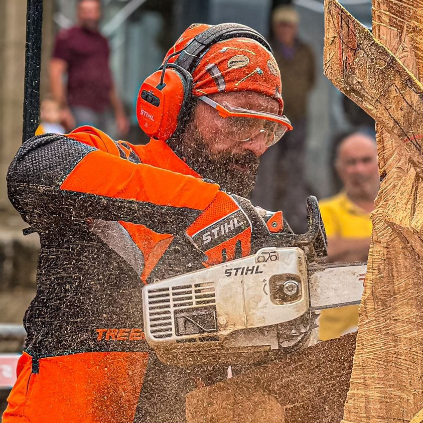 Escultura em madeira com motosserra.