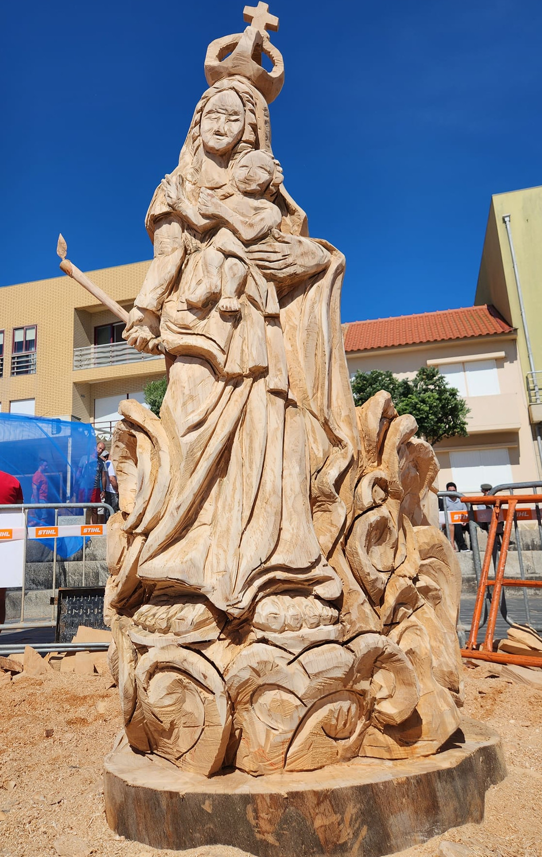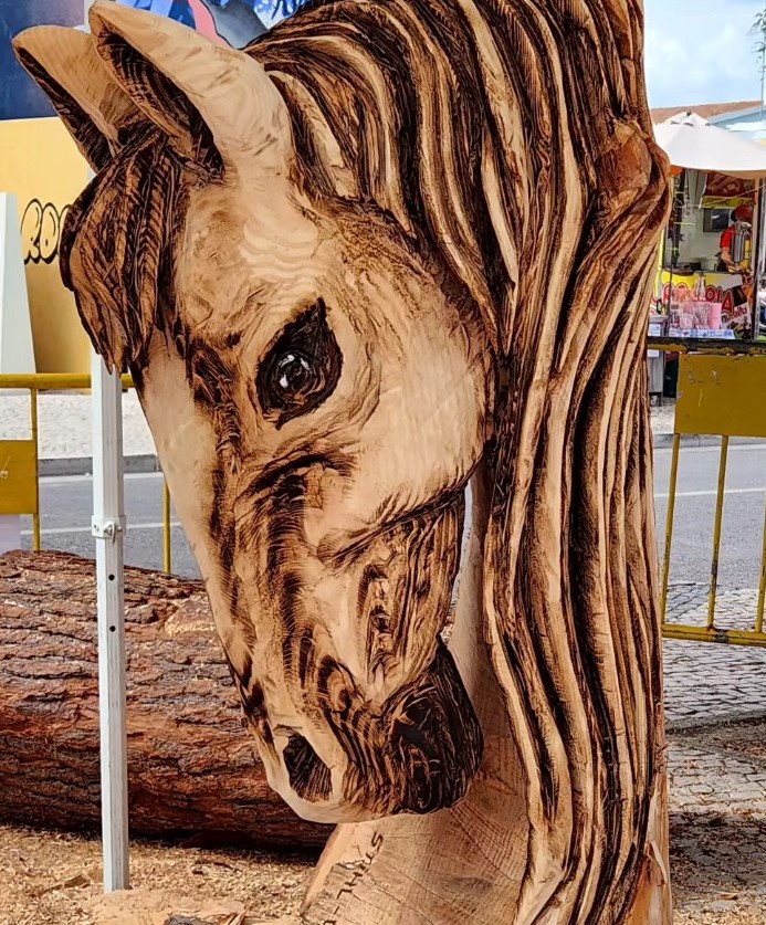 Escultura em madeira com motosserra.
